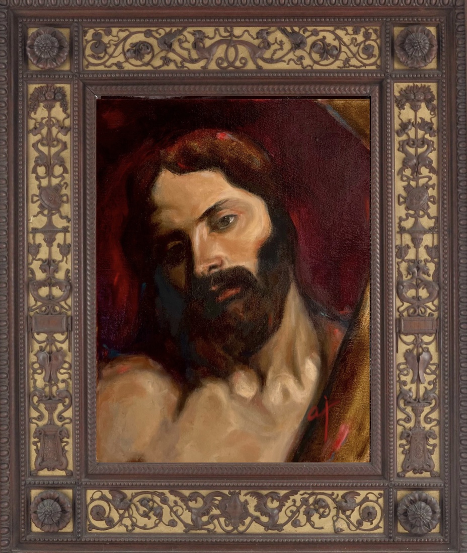 – Az első festmény, amelyet a noviciátusban készítettem, egy akvarell volt. Egy térdeplő alakot ábrázolt, amelyet hatalmas kezek tartottak, az Atya kezei. Az alakot fentről áradó fénynyaláb világította meg. A spirituális élmény metaforájának szántam, de akkoriban meglehetősen kevéssé értettem a mesterségbeli fogásokhoz, és nem is vettem az egészet túl komolyan. Nem vagyok benne biztos, hogy utólag műalkotásnak nevezném… Szívesen festek portrékat, mert az emberek arcában látom tükröződni Isten szépségét, ahogy életet lehel belénk, ahogy jelen van az életünk történetében, de a tájképeket, ikonokat is szeretem. Kedvencet kiemelni közülük azért is nehéz, mert mindegyikben van belőlem valami, mindegyikhez kötődöm, szóval nem igazán tudok külső szemmel tekinteni rájuk. De ha muszáj, talán azt a Krisztus-arcot emelném ki, amelyet a harmincnapos lelkigyakorlatom alatt festettem. Láttam korábban egy Van Dyck-képet, ami nagy hatást gyakorolt rám, és ennek próbáltam meg egy nagyon személyes változatát elkészíteni. Hosszú órákat töltöttem meditációban és a Vele való beszélgetésben. Technikai értelemben talán nem a legjobban sikerült munkám, de az biztos, hogy azok közé tartozik, amelyeket a legjobban szeretek.