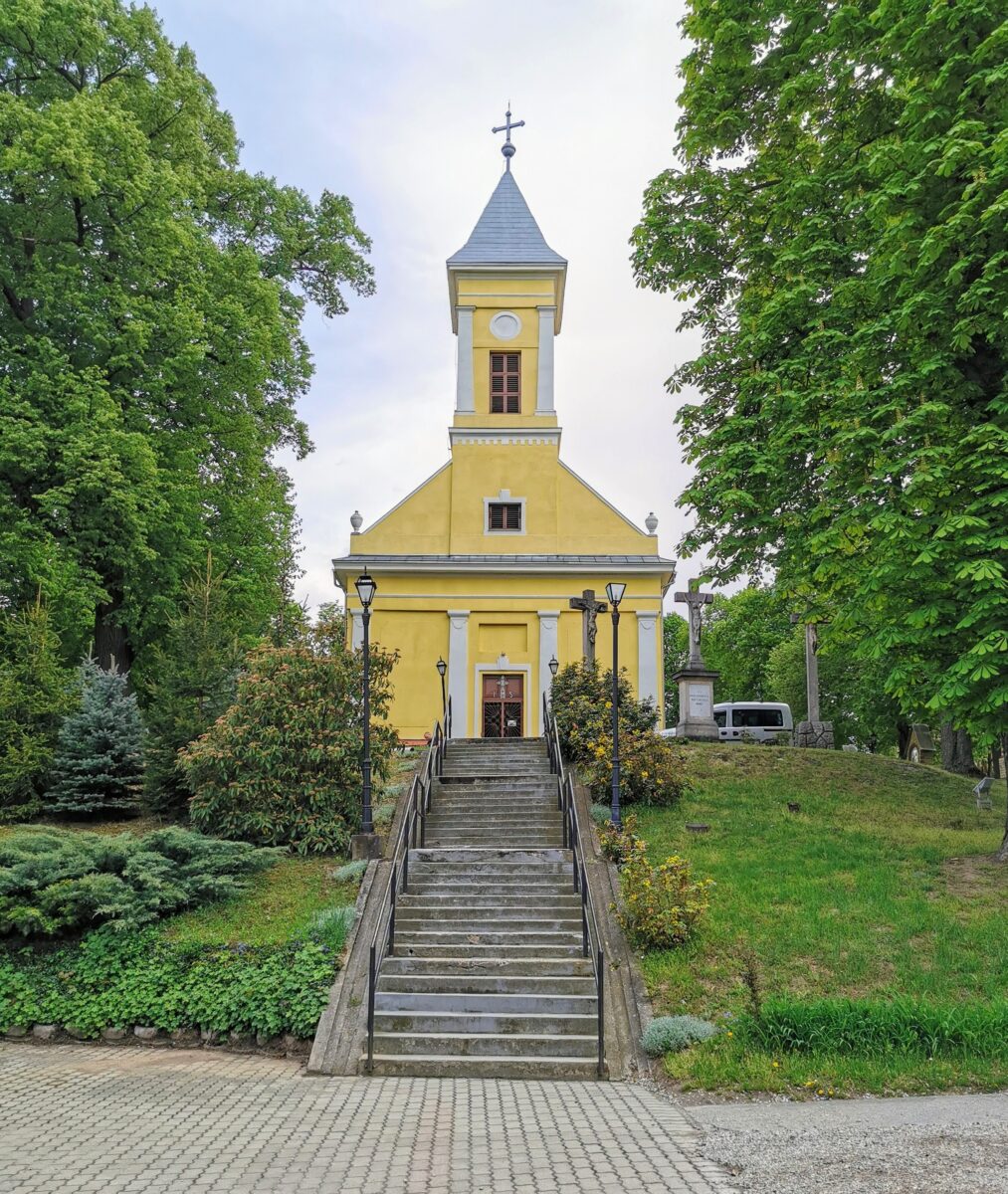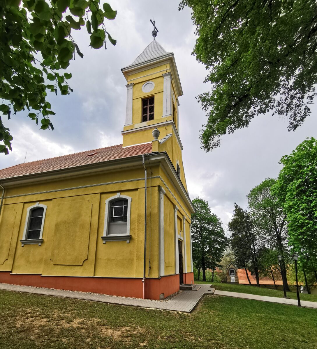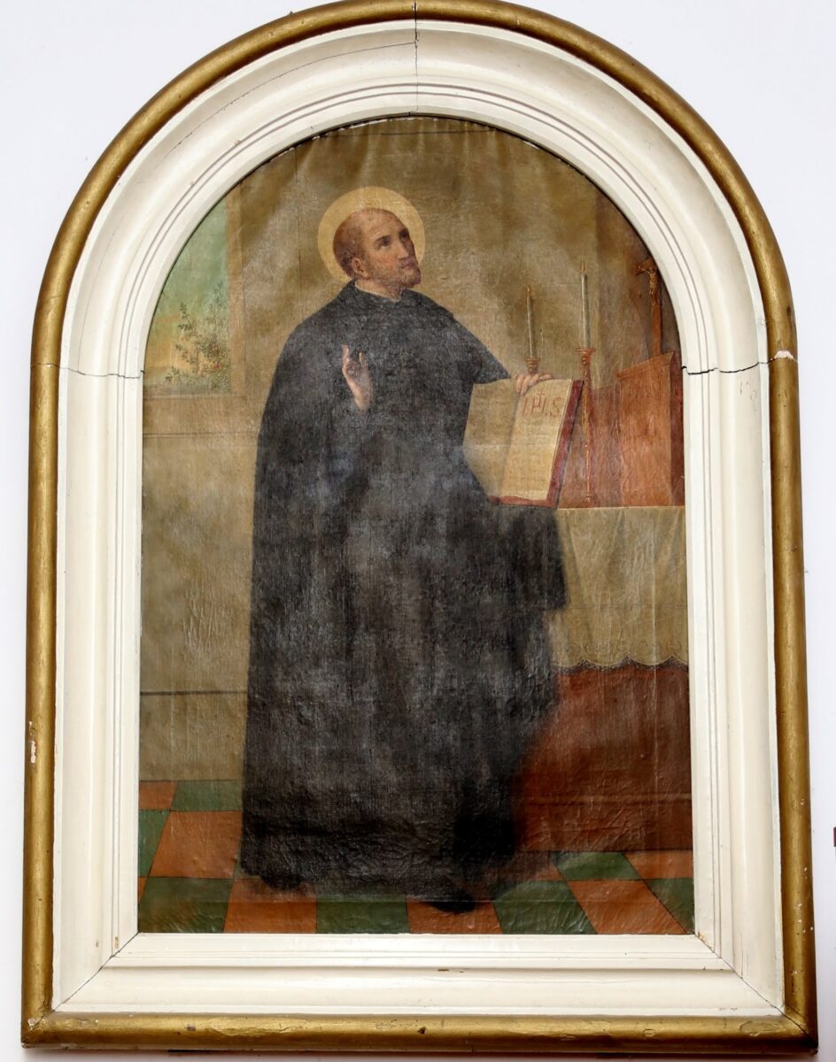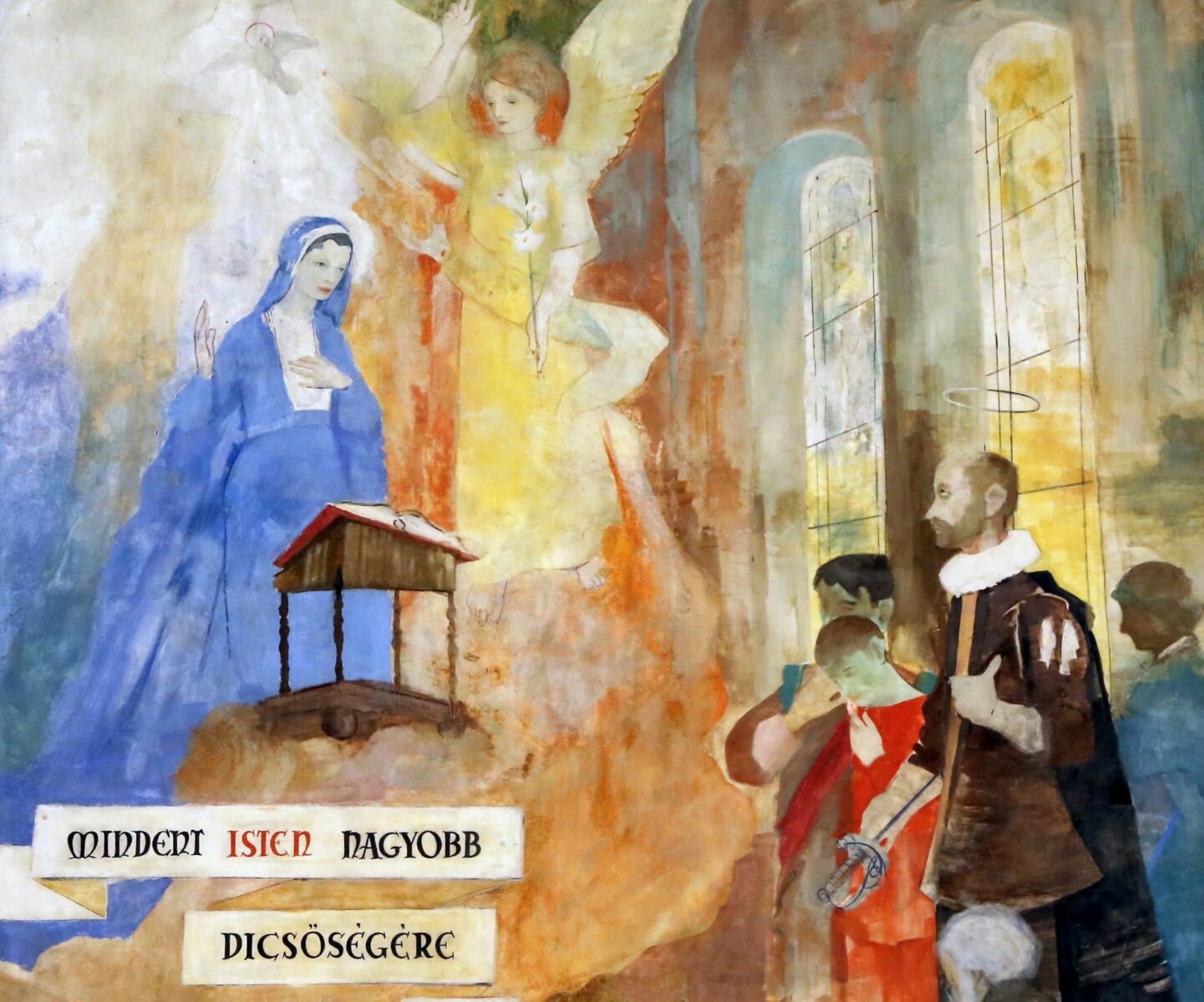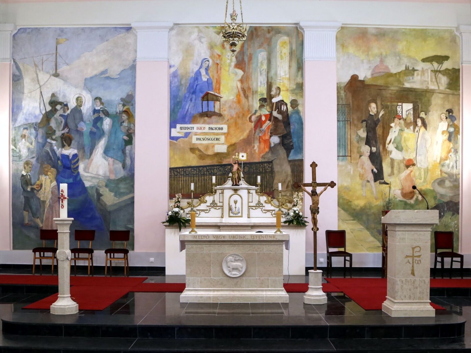 A mendei templom kívülről igen takaros, hívogató. Távolról a viharos szelek által megcibált, ferdén álló kereszt véteti észre magát elsőként, s amint belépünk, azonnal az oltárképre, pontosabban a szentély hátsó falát teljes egészében beborító, Loyolai Szent Ignác életének epizódjait ábrázoló triptichonra szegeződik a tekintet. Már csak azért is, mert némiképp szokatlan, hogy egy templomban ennyire szürreális hatású, modern alkotással találkozzunk. A templom építésének, titulusának és oltárképének szövevényes történetét Mende helytörténetének kiváló ismerője, Balogh Gábor meséli el számunkra. A szociológus, kutató néhány évvel ezelőttig a Pázmány Péter Katolikus Egyetemen tanított (nem mellesleg győri bencés öregdiák, sőt, 1979-ben rendkívüli civil hallgatóként teológiai licenciátust is szerzett), nyugdíjas éveiben választott lakóhelye történetét kutatja és publikálja számos újságcikk, illetve egy sor kiadvány és előadás formájában.